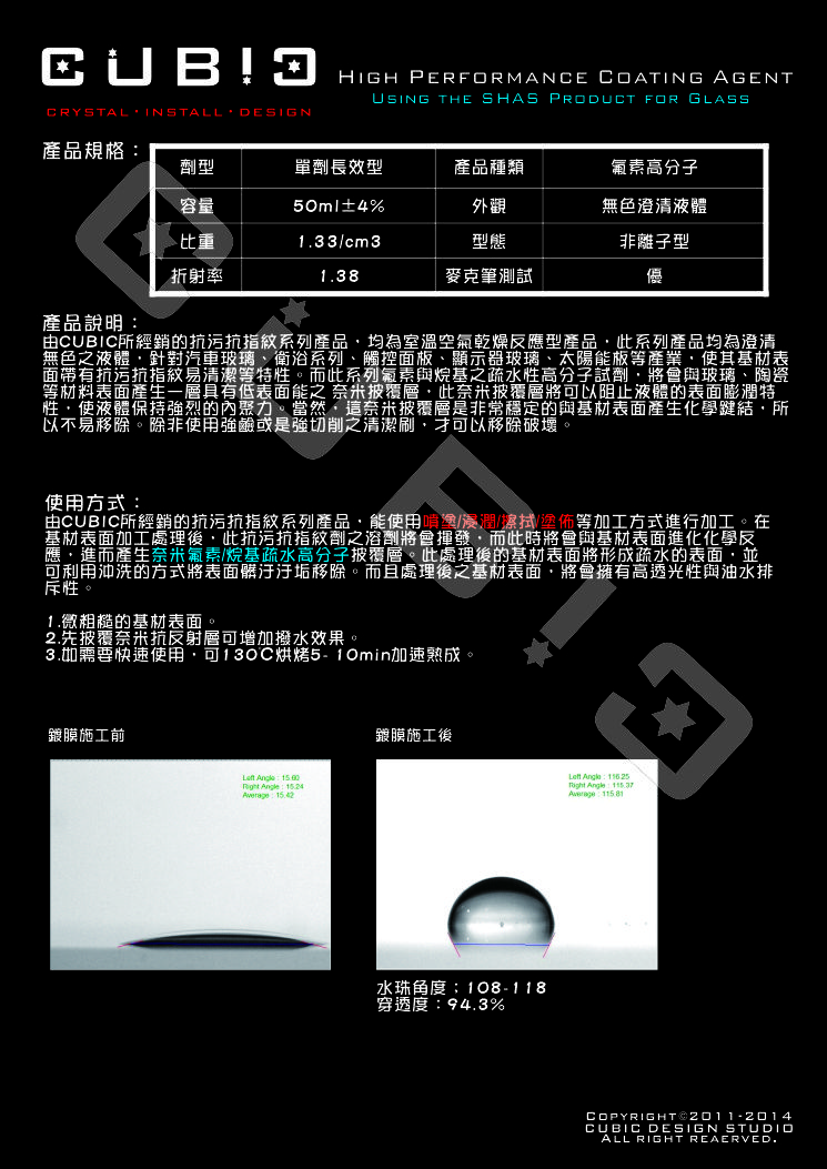 ●高分子氟素玻璃鍍膜-抗污抗指紋系列產品